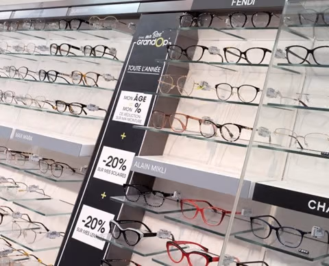 * L’examen de la vue (de la réfraction) au prix conseillé de 29€, est offert du 08/04/2025 au 26/05/2025 dans les magasins GrandOptical participants. Il ne constitue pas un examen médical et ne remplace pas un suivi régulier par votre ophtalmologiste. Il permet le renouvellement des lunettes, à l’identique sans prestation d‘adaptation, ou le renouvellement adapté avec prestation d‘adaptation. Dans les magasins proposant ce service, le prix conseillé de cet examen est de 29€. La prestation d’adaptation de la prescription médicale de verres correcteurs, après réalisation d’un examen de la réfraction, permet le renouvellement des lunettes en cas d’évolution de votre correction. Dans les magasins proposant ce service, le prix conseillé de cette prestation d’adaptation est de 10€. Avec ou sans rendez-vous, nos opticiens-lunetiers sont habilités à réaliser les examens de la réfraction et prestation d’adaptation, pour tout client âgé de plus de 16 ans ne présentant pas de pathologie oculaire, et conformément à la réglementation applicable. Le visuel est une illustration. Le matériel professionnel peut varier selon le magasin. GrandVision France RCS Versailles 492 787 957. Avril 2025