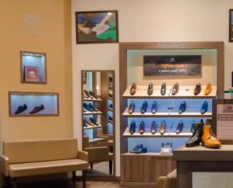 Grand spécialiste de la chaussure masculine avec une collection unique de près de 150 modèles, Finsbury attire une clientèle à la fois traditionnelle et plus moderne grâce au design tendance de ses créations. C'est dans un espace moderne dédié à l'élégance masculine que vous accueille l'équipe de Finsbury à Belle Epine.