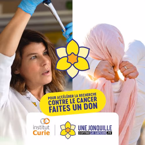 L’Institut Curie, premier centre français de lutte contre le cancer, porte chaque année la nationale de mobilisation et d’appel à la générosité, Une Jonquille Contre le Cancer. Cette campagne vise à soutenir et accélérer les recherches et les innovations médicales menées à l’Institut Curie. Génétique des cancers, immunologie, immunothérapie, médecine des rayons… nombreux sont les domaines dans lesquels chercheurs et médecins s’investissent pour développer les thérapies de demain et guérir plus de patients.
